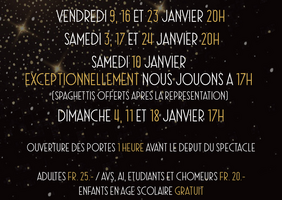 samedis 3, 17 et 24 janvier 2026 à 20h00 samedi 10 janvier 2026 à 17h00